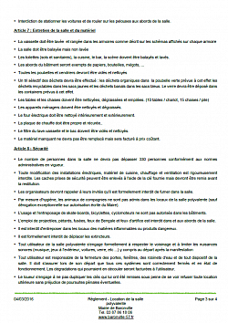 - De la convention de location de la salle polyvalente et des pièces à fournir