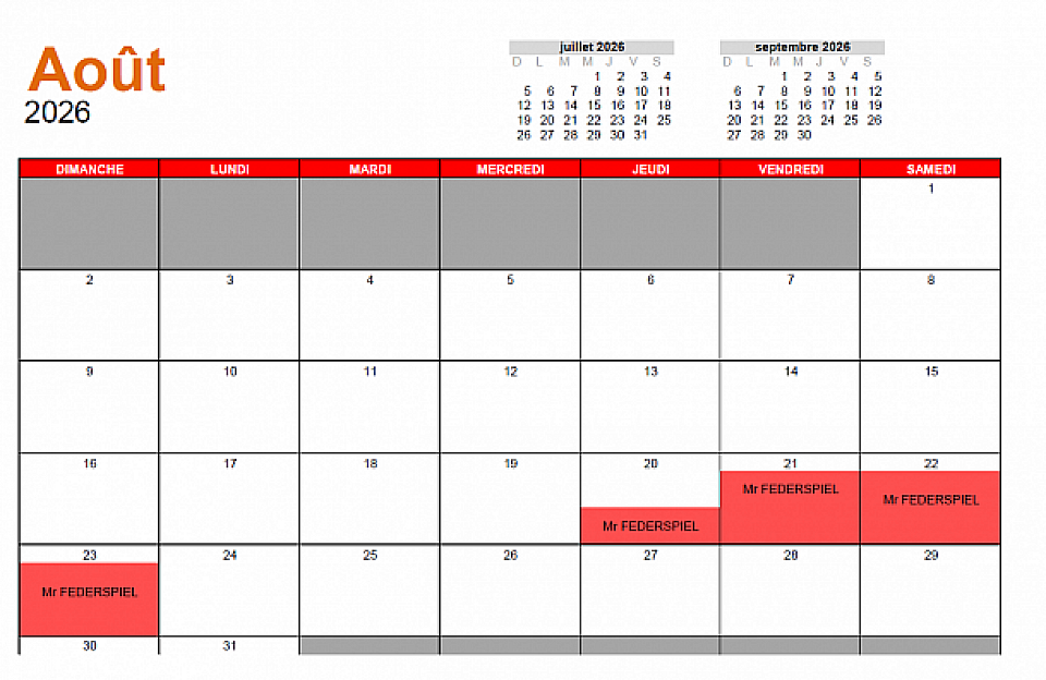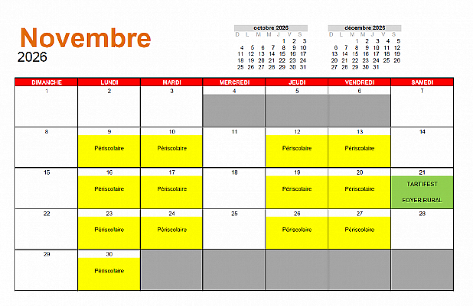 Les plannings ci-dessous vous donnent un aperçu de la disponibilité de la salle sur les mois à venir. Les réservations indiquées ne sont données qu'à titre indicatif. Une réservation n'est effective qu'après signature d'une convention de location entre le locataire et la mairie de Baronville.